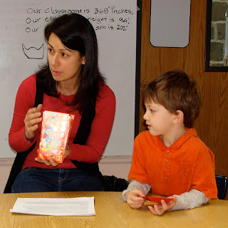 On Friday, Mr. B. and our new 5th/6th Grade Buddies came back (last time, they gave outstanding presentations on the Human Body) to share specially selected stories. They went to the library and hand-picked various books just to read to us! We listened to fictional tales about pigs and dogs; and non-fictional stories about whales and the tallest woman in the world. Kindergartners were once again a wonderful and attentive audience! Before departing, our Buddies even hung our snowflakes (made by Chris' 3rd and 4th Graders) to decorate our room. We can't wait for them to return!